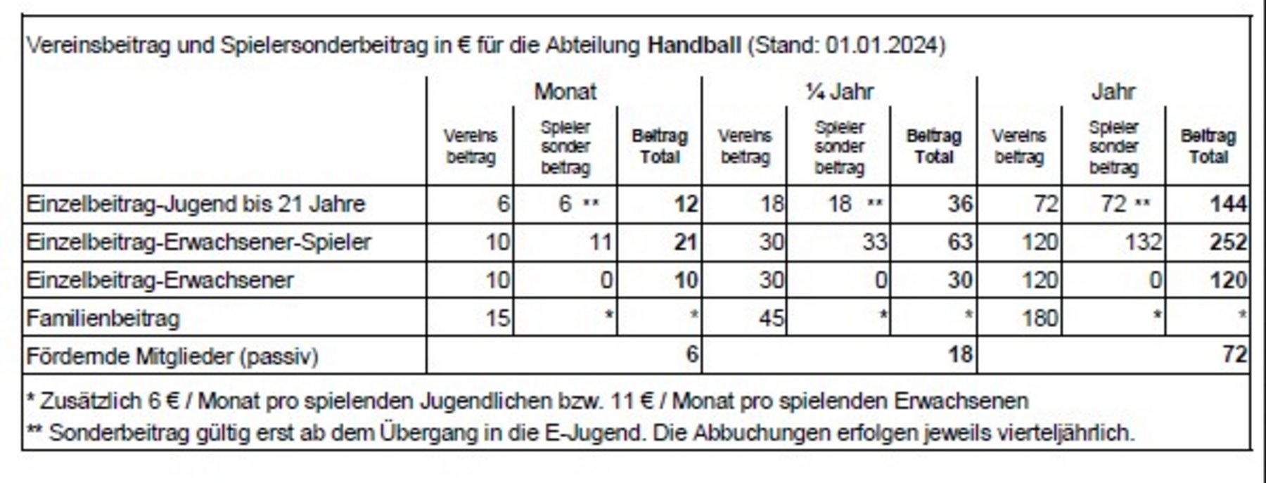 Beitragssätze in der DJK Sportfreunde Budenheim e.V