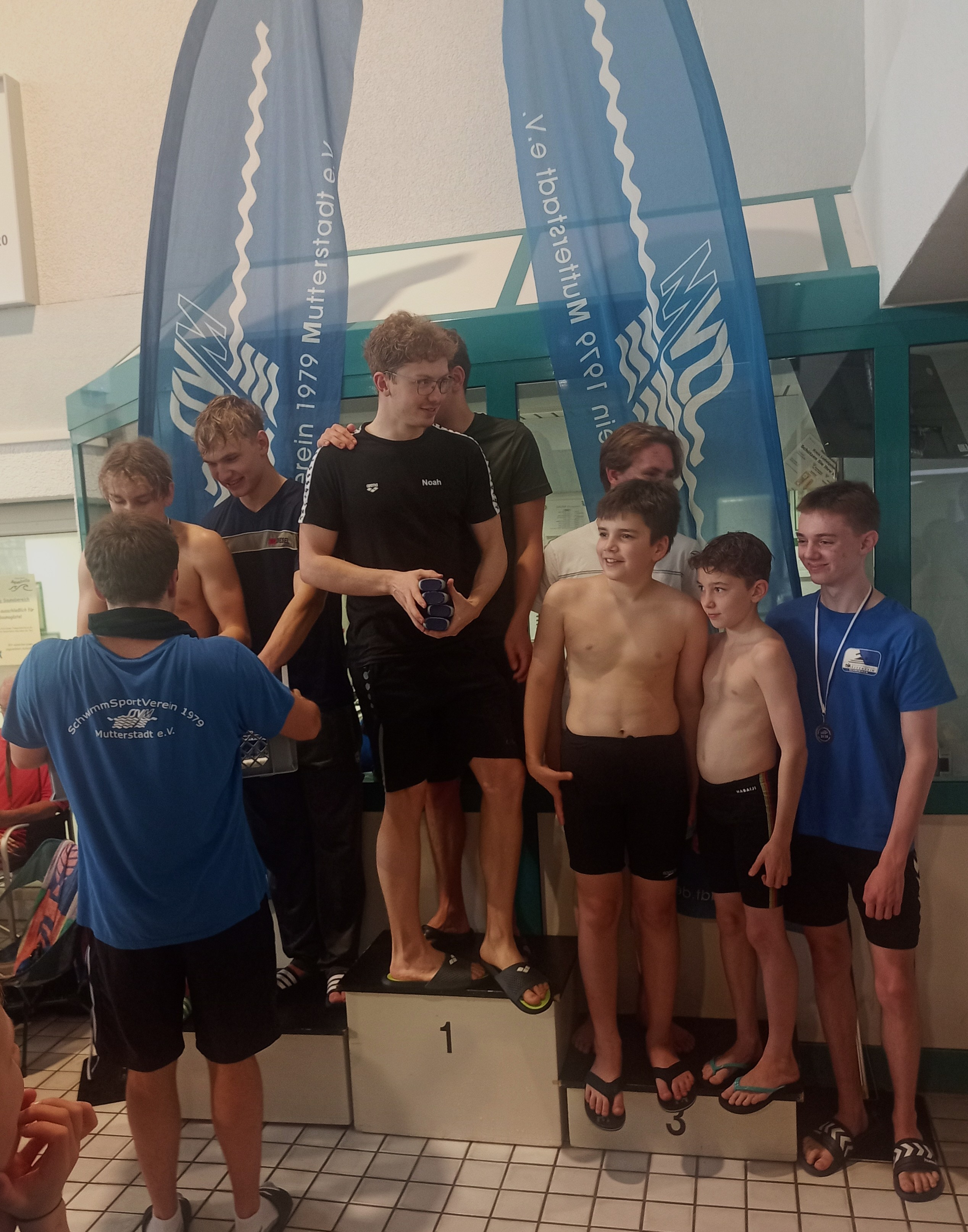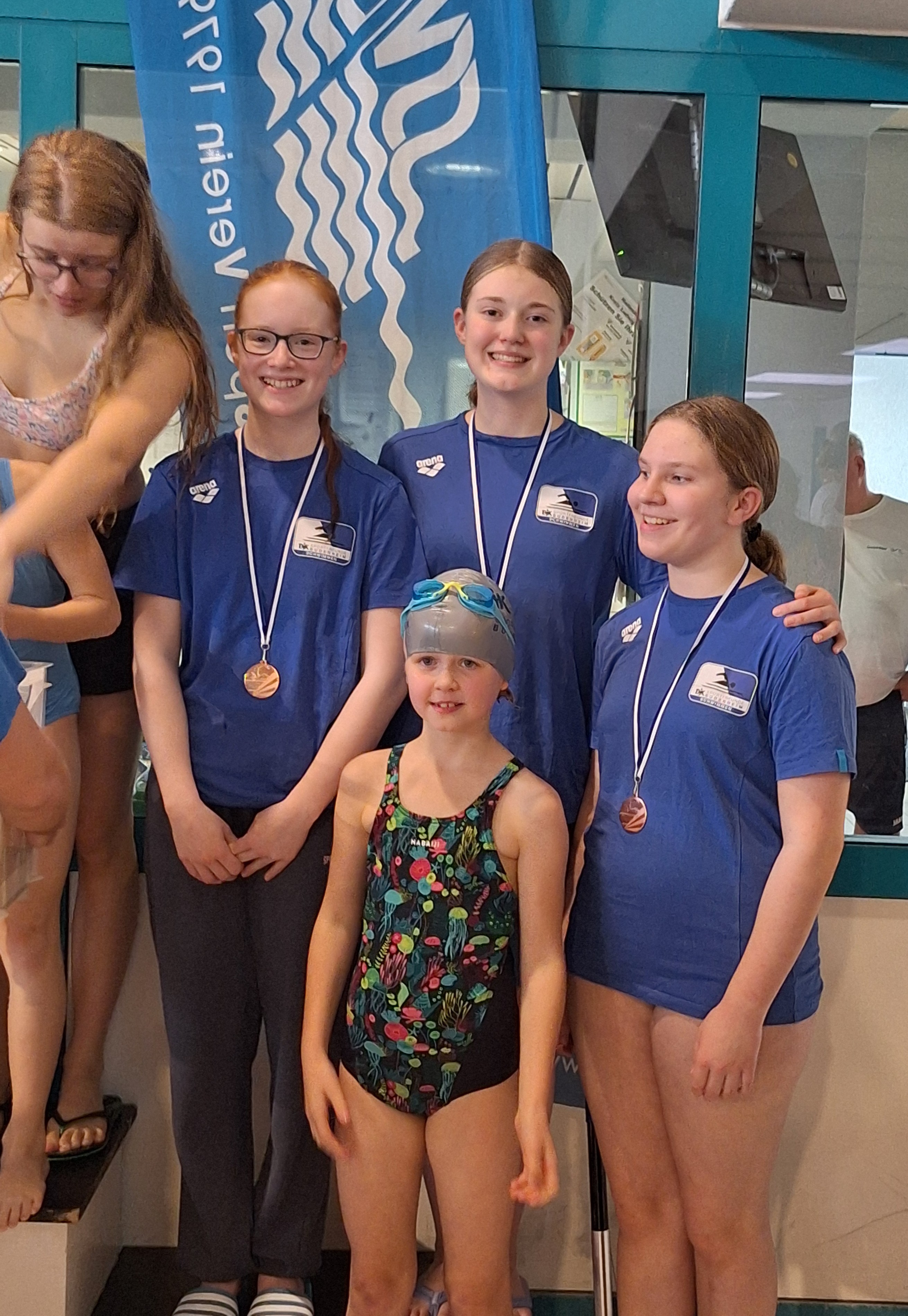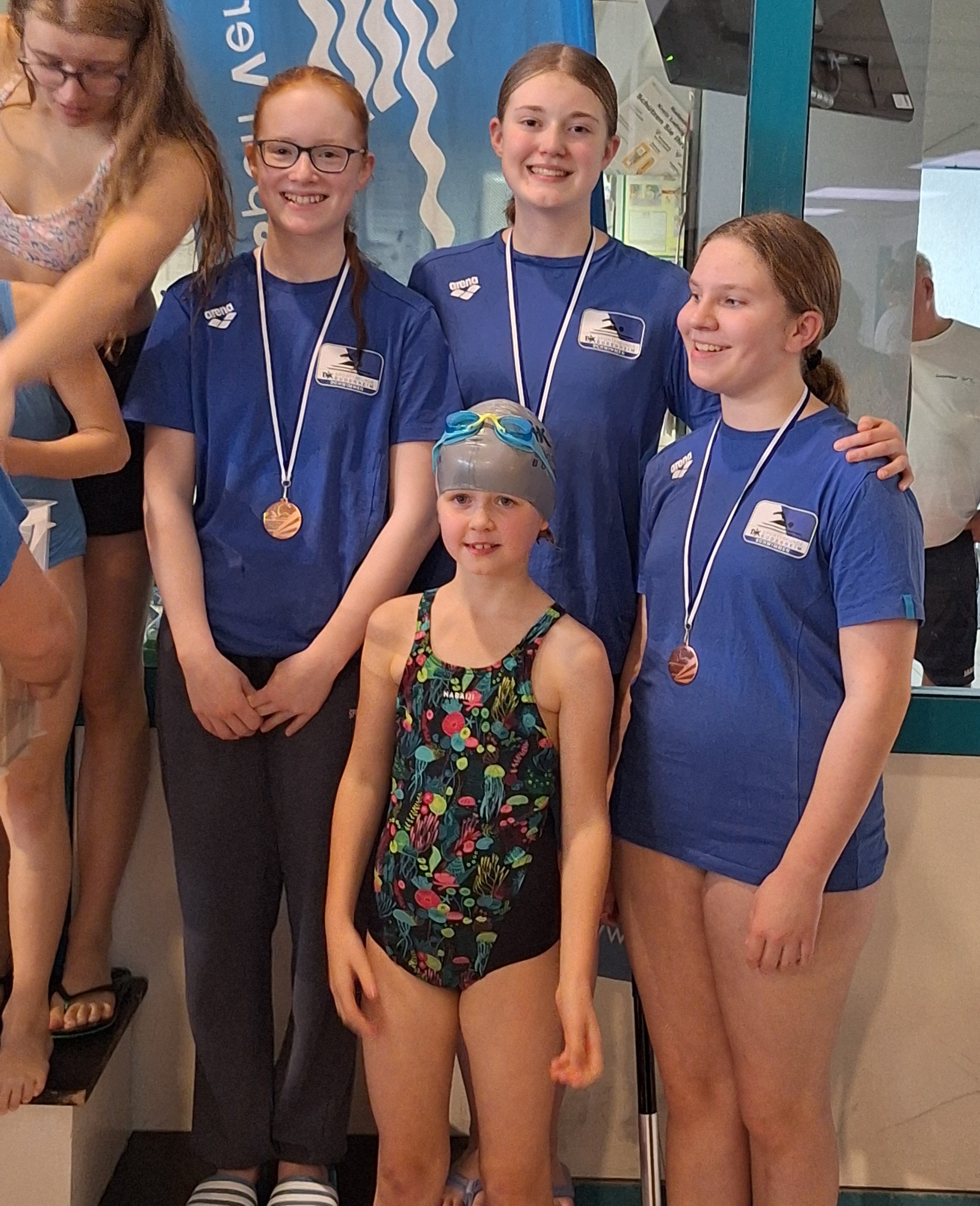 Zum ersten Mal bei einen Schwimm-Wettkampf konnten sowohl die weibliche und als auch die männliche Budenheimer Mannschaft bei der Lagen-Staffel auf dem Treppchen mit der Bronze-Medaille stehen.