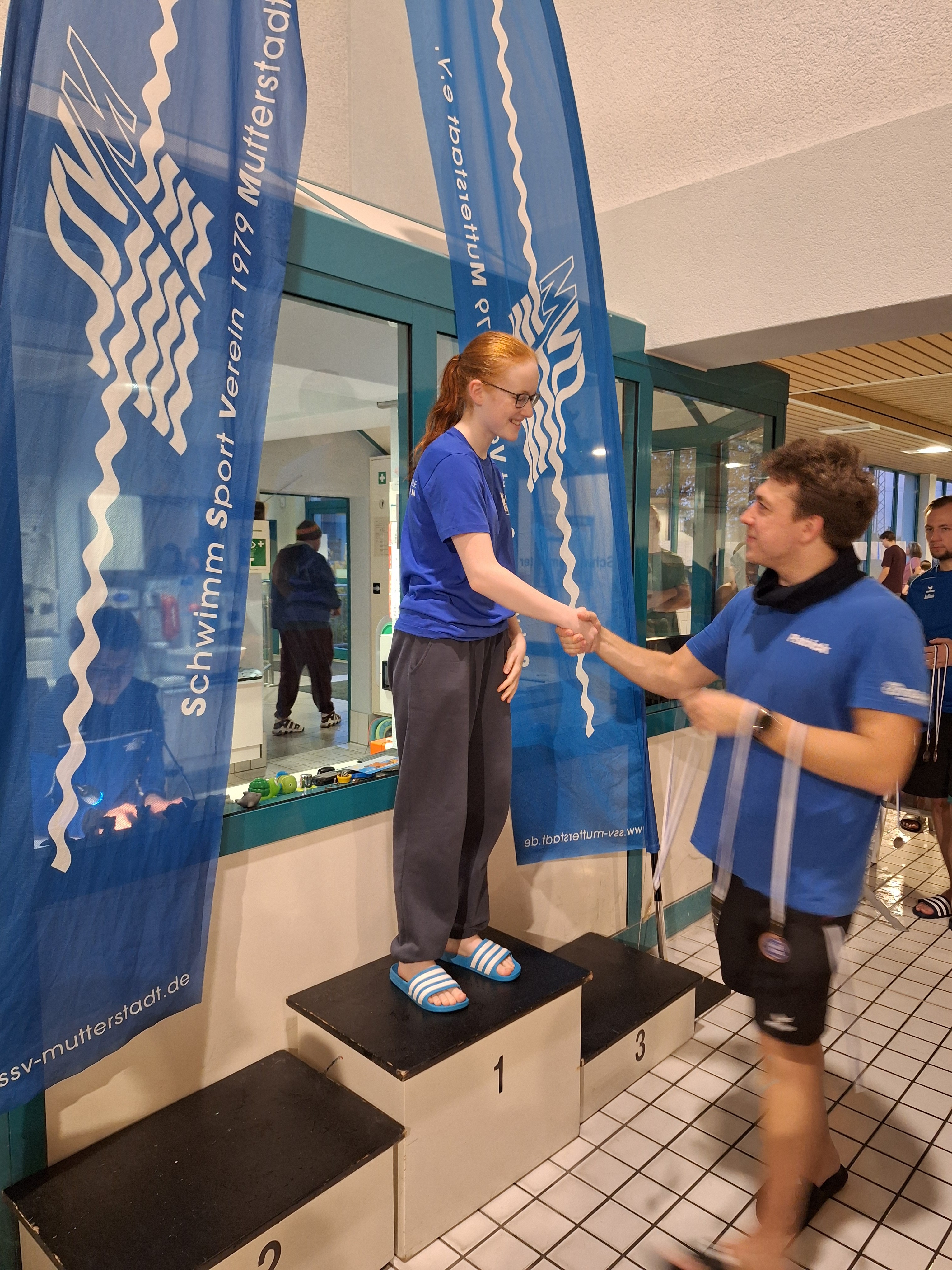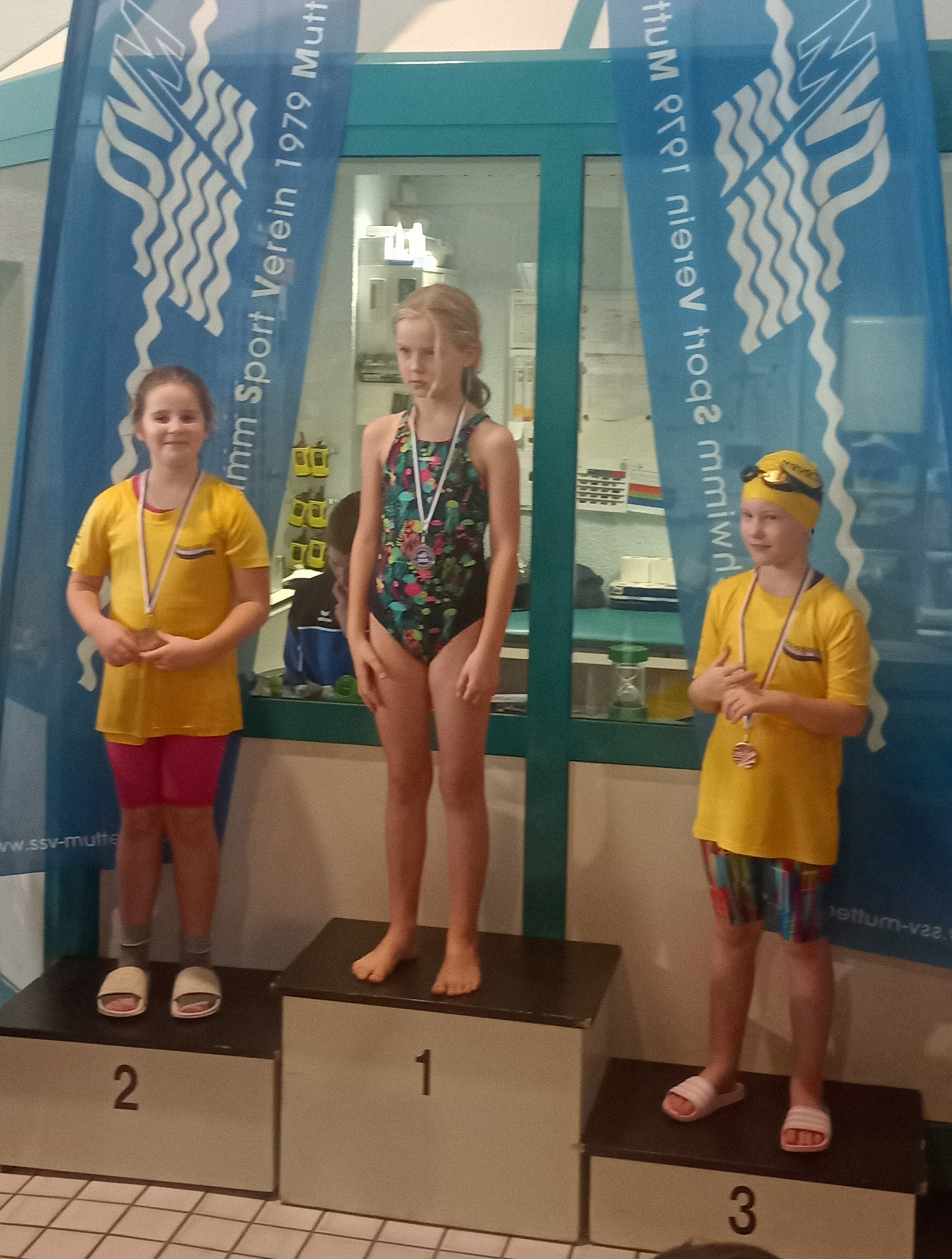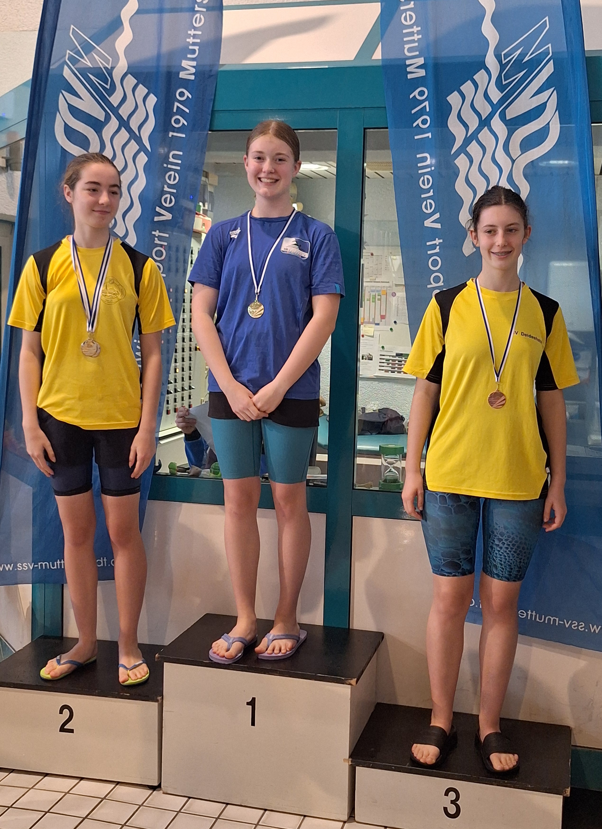 Zum ersten Mal bei einen Schwimm-Wettkampf konnten sowohl die weibliche und als auch die männliche Budenheimer Mannschaft bei der Lagen-Staffel auf dem Treppchen mit der Bronze-Medaille stehen.
