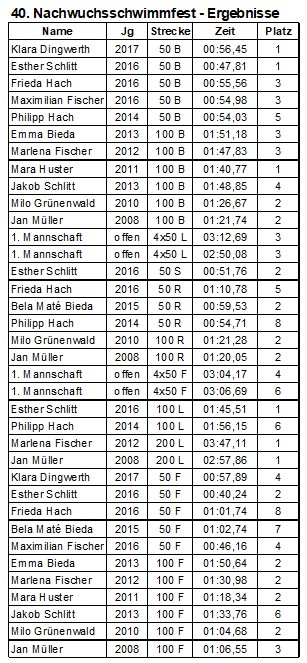 Beim 40. Nachwuchsschwimmfest im Aquabella-Bad in Mutterstadt starteten 6 Schwimmerinnen und 6 Schwimmer der DJK Sportfreunde Budenheim. Nach einer Stunde Anfahrt und dem Einschwimmen begann der Wettkampf um zehn Uhr. Die Budenheimer Schwimmer starteten auf den Kurzstrecken, 50 m für Jahrgang 2014 und jünger, sowie 100m für Jahrgang 2013 und älter.